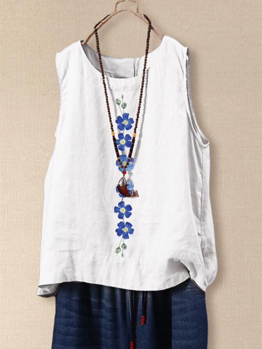Women Casual White Cross Neck Halter Neck Loose Sleeveless Cotton Linen Tank Top