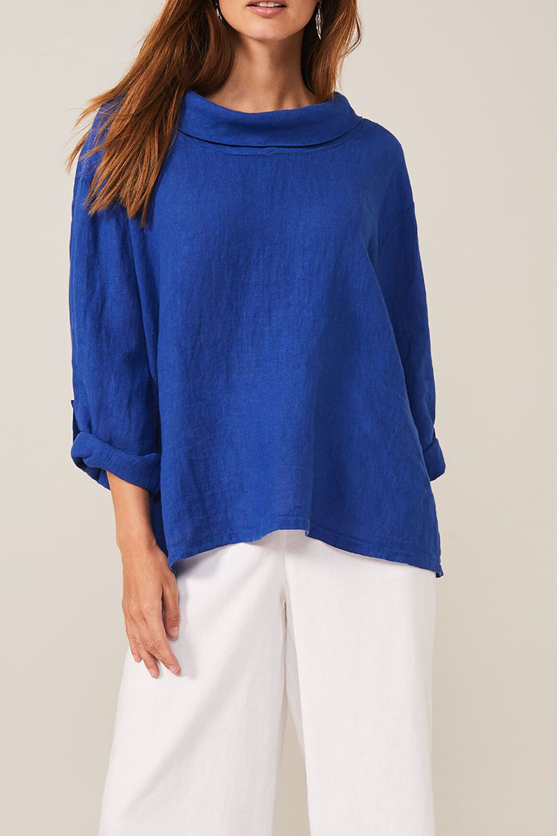 Women Loose White Summer Cowl Neck Short Sleeve Cotton And Linen Tunic Top