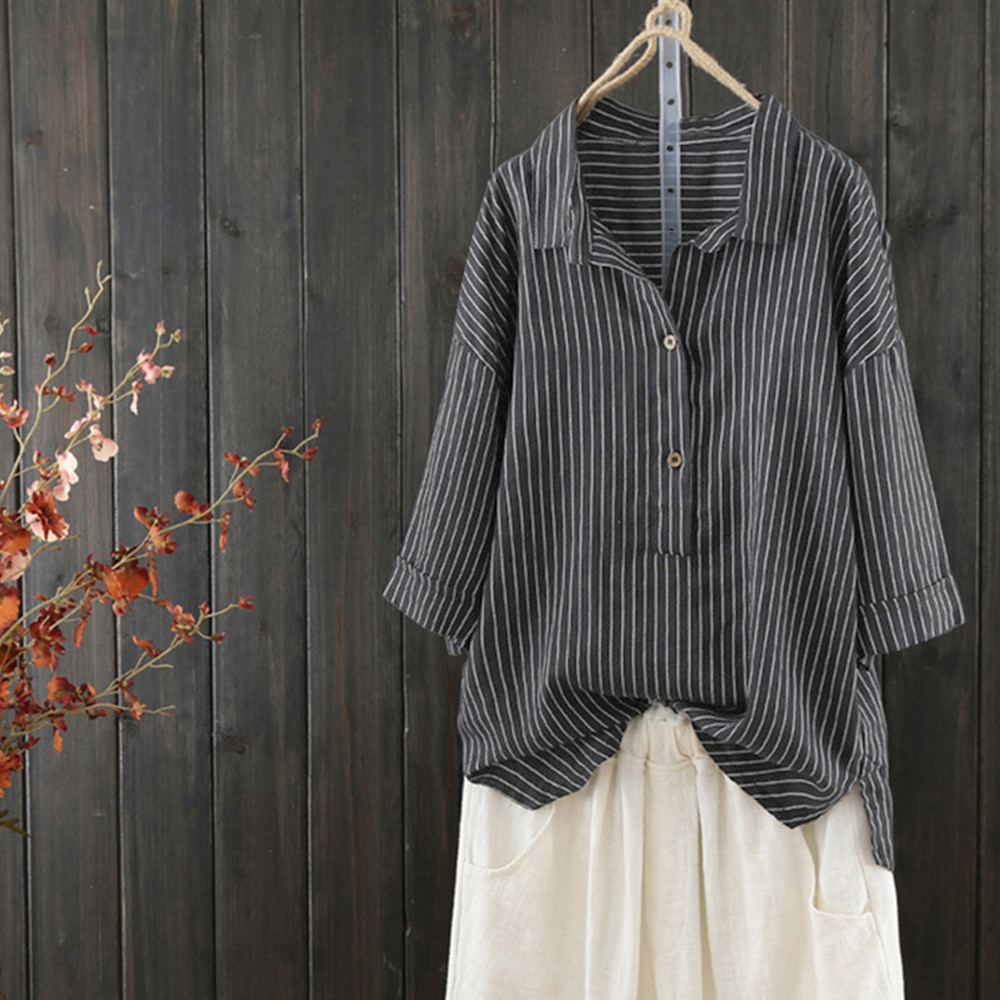 Women'S Peter Pan Collar Drop Shoulder 3/4 Sleeves Casual Linen Shirt