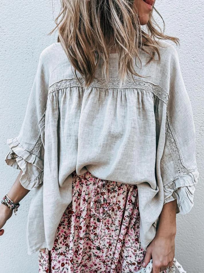 Women's Lace Doll Collar Casual Linen Top