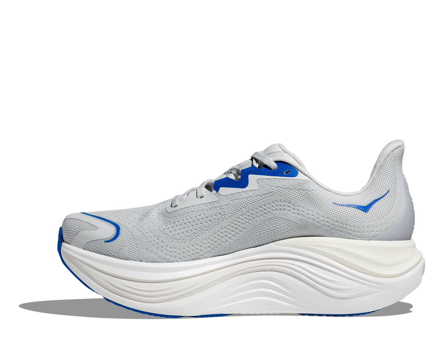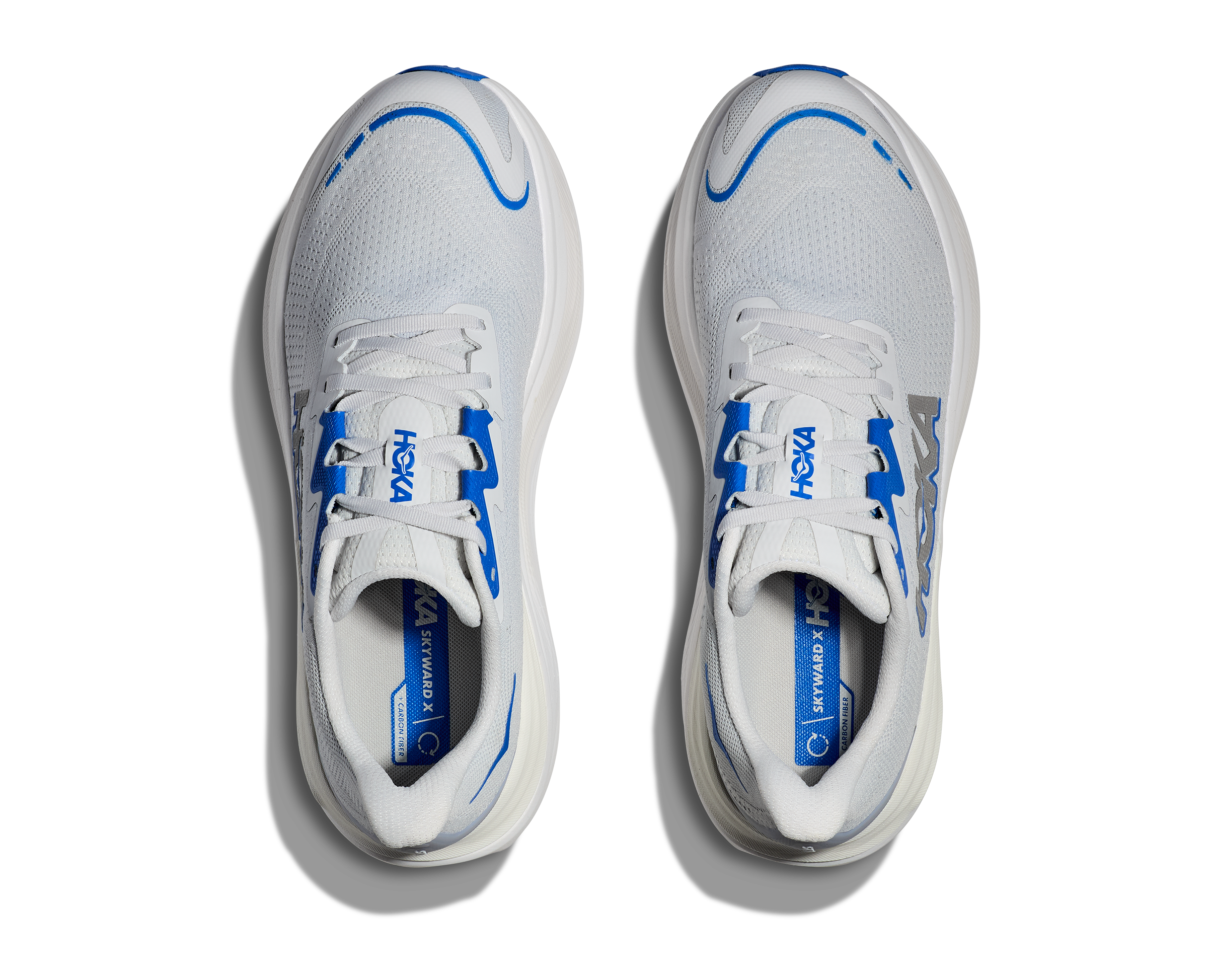 We threw out the rulebook when creating the Skyward X. Pushing soft and smooth to the extreme, this cushy new trainer features a revolutionary suspension system with a convex carbon fiber plate that allows the suspension system to compress and spring back with each step. A soft, highly resilient PEBA foam sits closest to the foot for a lively, cushioned ride, while a premium EVA foam frame provides a stable base for your easiest miles yet.