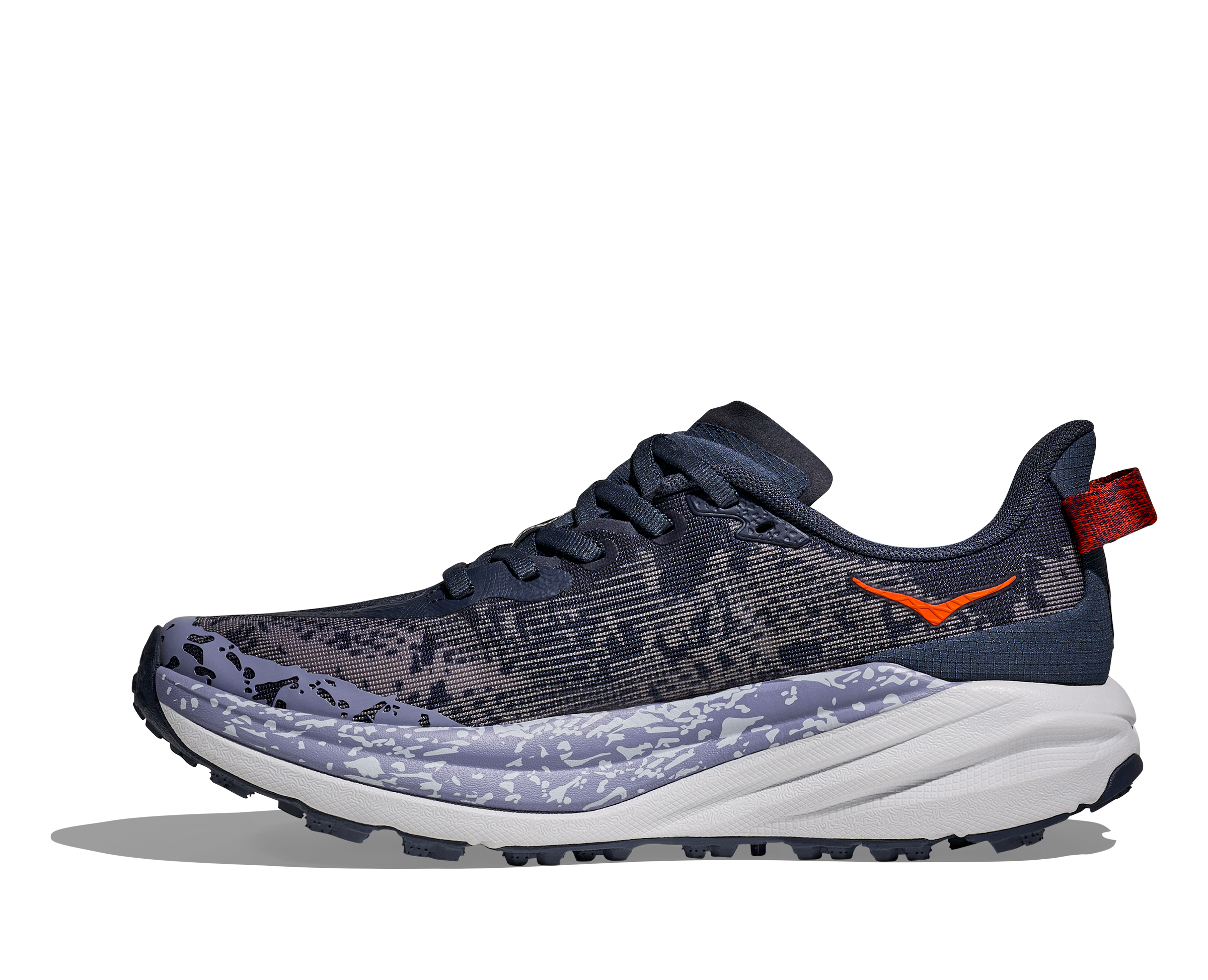 There??s only one GOAT on the trail. And this is it. Combining HOKA??s tried and true cushioning with aggressive traction and ultralight materials, the Speedgoat 6 was born to tame the trail. A workhorse for technical terrain, this recent reissue was refined with a breathable woven textile upper, foot-hugging internal chassis, plusher dual gusset tongue, and revised lug orientation inspired by the hoof of a goat (what else?)