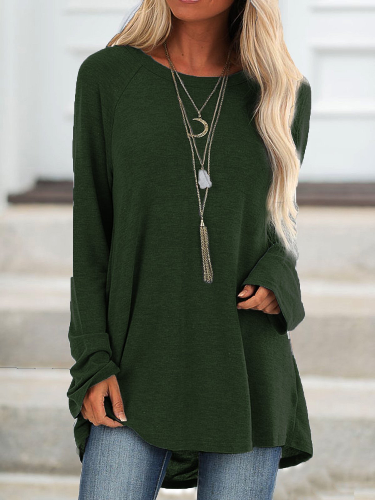 Gray Cotton Casual Crew Neck Solid Shirts & Tops