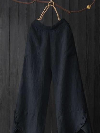 High waist large size loose pocket buttons irregular women's casual pants