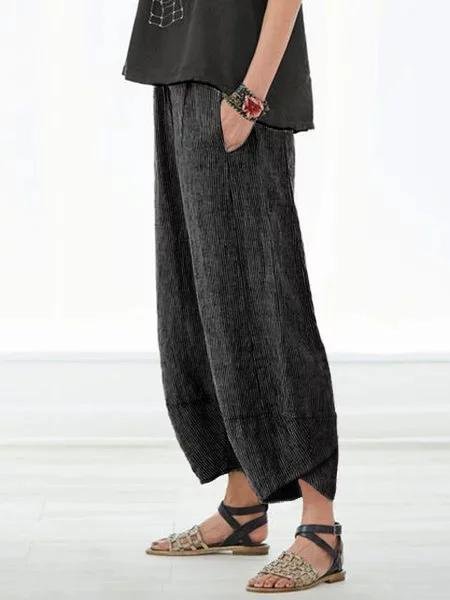 Relaxed Striped Capri Pants With Linen Pockets