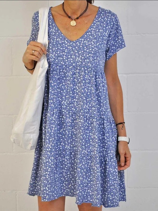 round Neck Slim-Fit Short Sleeve Dress