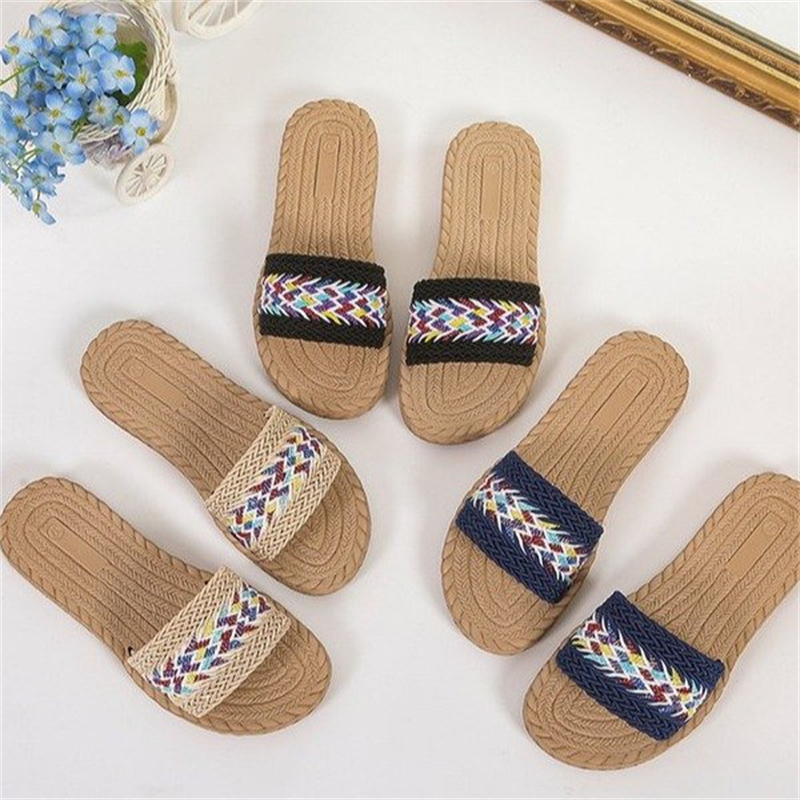 Round Toe Ethnic Style Beach Slippers