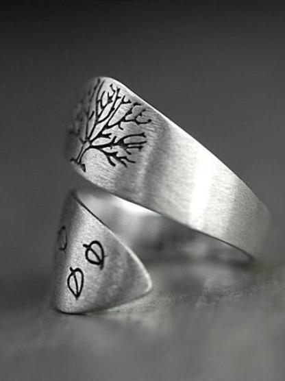 Tree of life opening hand-drawn winding ring