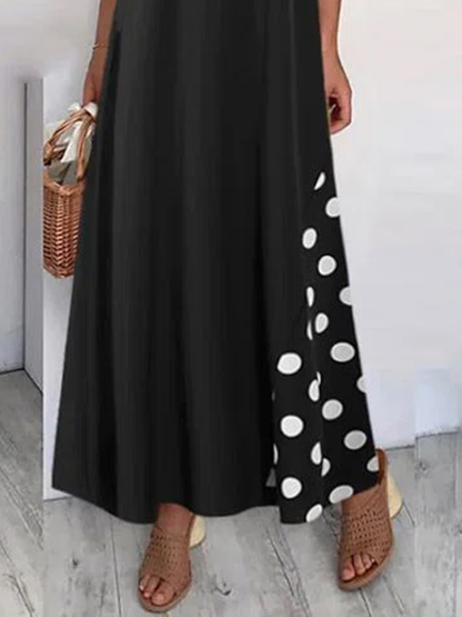 Vintage Polka Dot Print Short Sleeves Crew Neck Maxi Dress