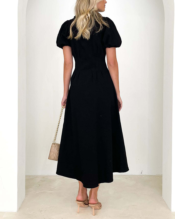 Women's Short Sleeve Solid Button Long Dress