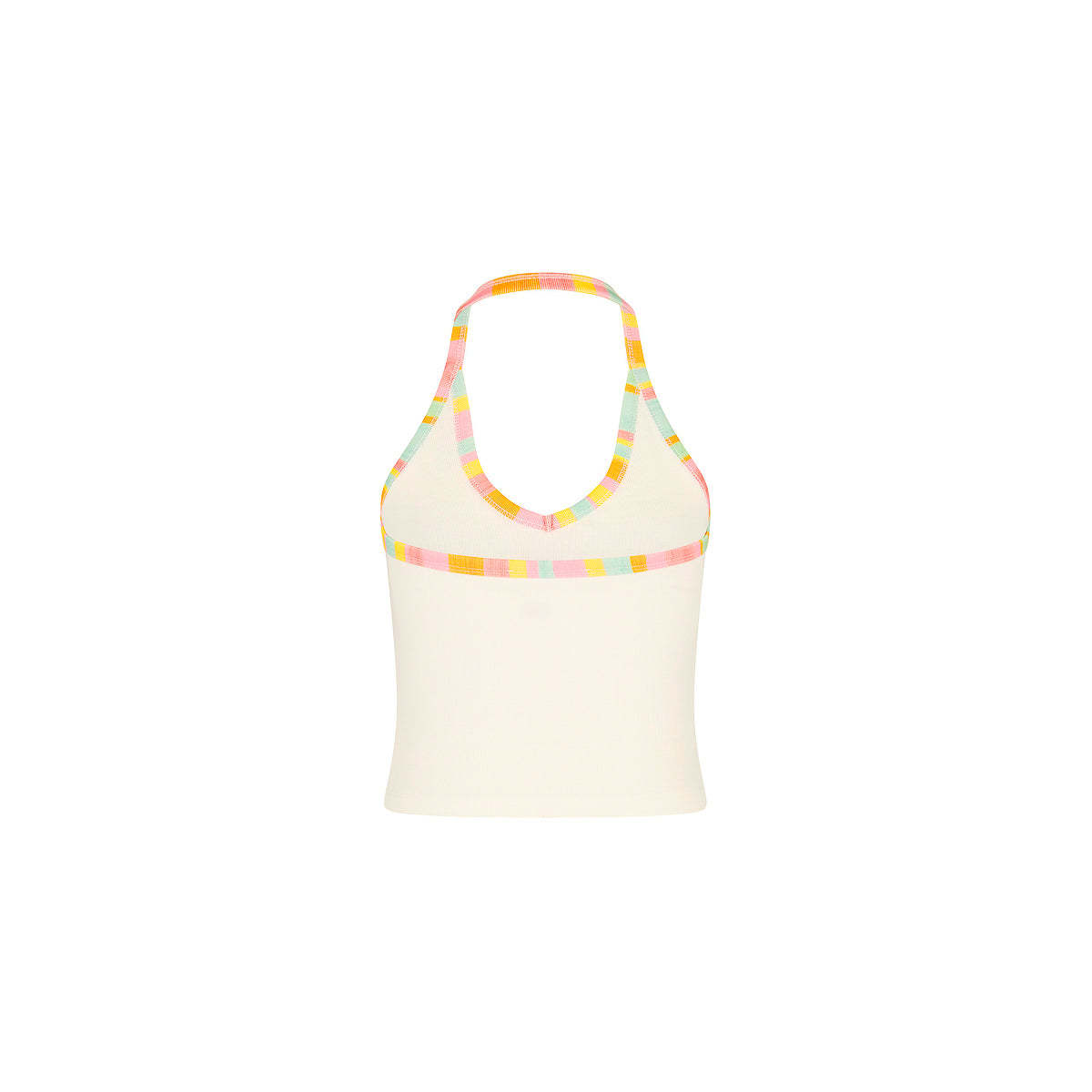 The ultimate all-year-round staple, this V-Halter Tank features a flattering fixed neckline and a curve-hugging silhouette. Crafted from a soft ribbed jersey, with contrast binding and a signature printed motif at the center front, this backless staple is as flattering as it is comfortable.