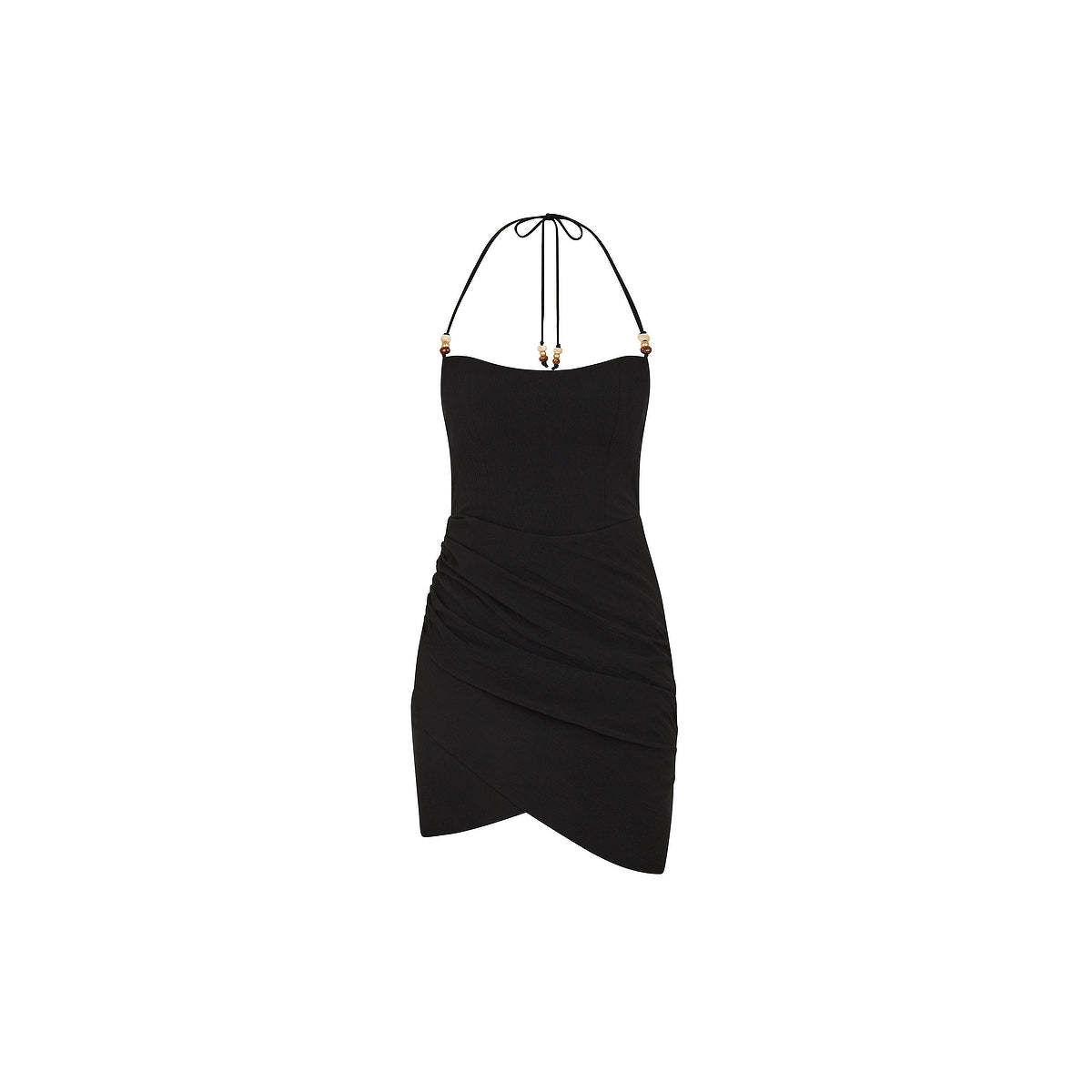 - Ruched side details with asymmetrical hemline