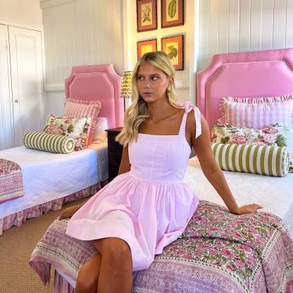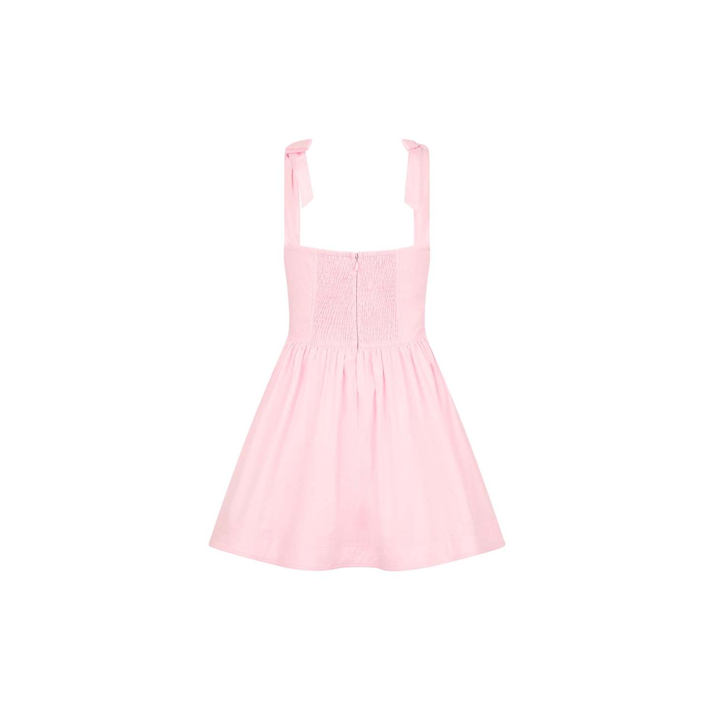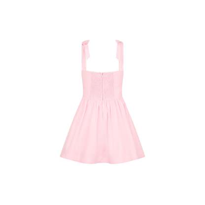 Sweet, romantic, and made for twirling - this is your ultimate girlcore moment. With a corset-style bodice, soft bow-tie shoulders, and a full ruched skirt, this mini dress brings major cupcake energy to your summer wardrobe.