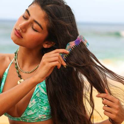 The perfect everyday companion! The Summer Comb features wide-tooth bristles that glide effortlessly through wet or dry hair, helping to reduce tangles and minimise breakage. Crafted in a beautiful swirled colourway and designed to be lightweight and compact, it’s the ideal addition to your gym bag, beach tote, or vanity.